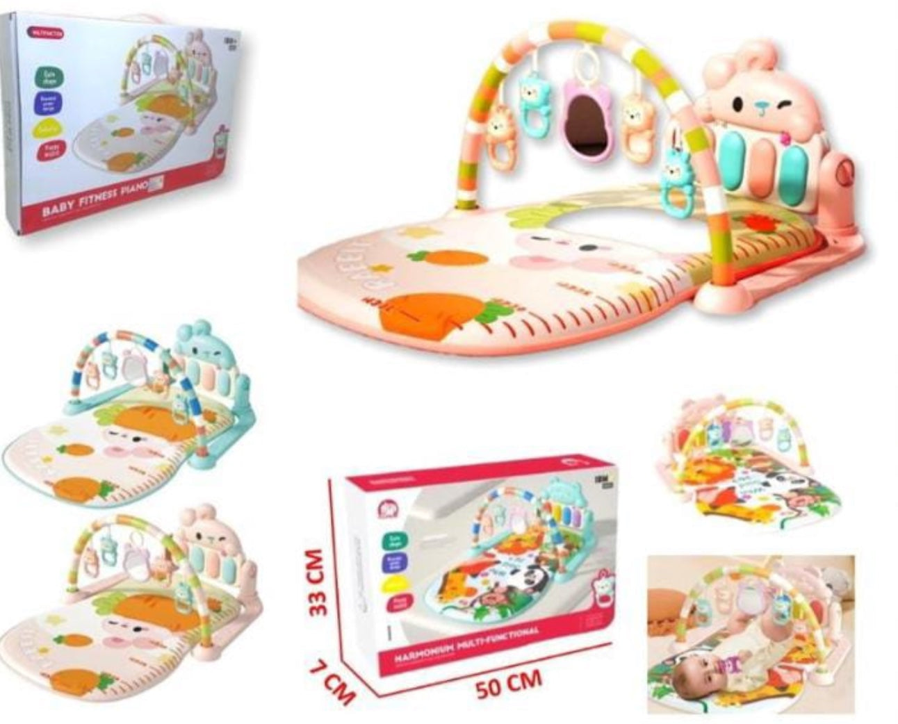 El Baby Fitness Piano combina estimulación temprana y juego interactivo. Su teclado musical se activa con las pataditas del bebé, ayudando a fortalecer sus piernitas mientras disfruta de luces suaves, melodías y colores vibrantes.