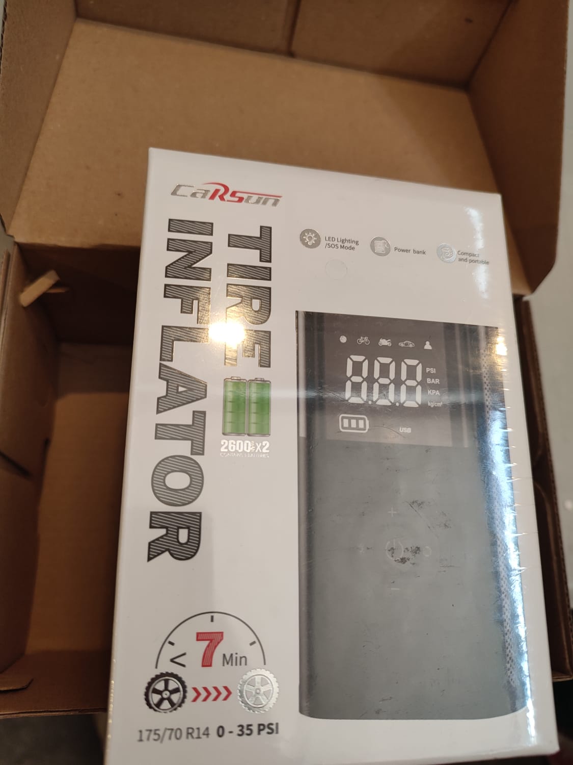 Gracias a su sistema inteligente con pantalla digital, puedes programar la presión exacta y el equipo se detiene automáticamente al alcanzarla, evitando sobreinflados. Además, incorpora linterna LED y power bank, ideal para emergencias en carretera o exteriores.