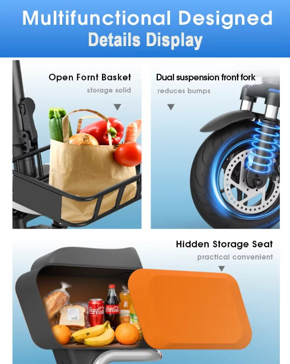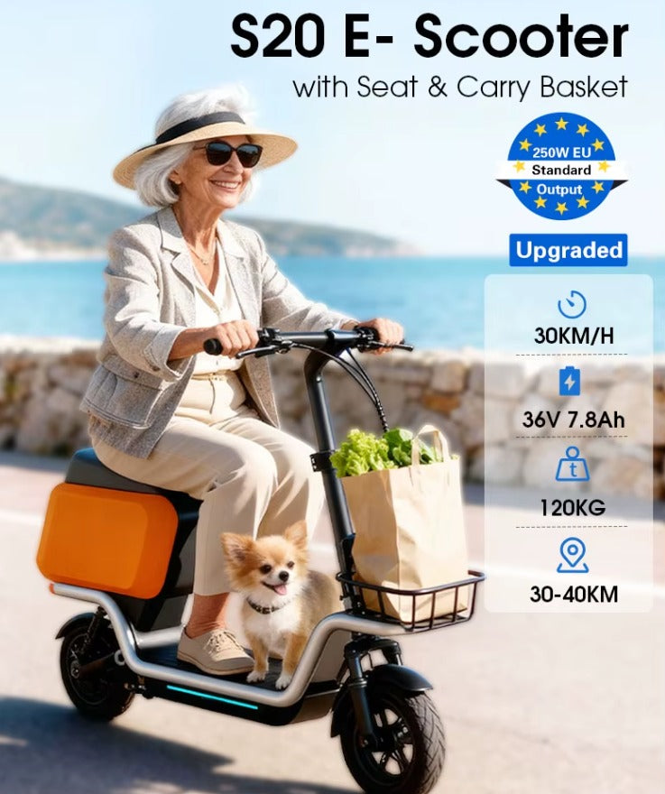 🛴 Scooter Eléctrico S20 Cargo con Asiento y Canasta